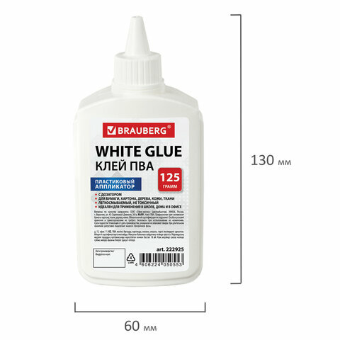 Клей ПВА Brauberg (бумага, картон, дерево), 125 г (222925)