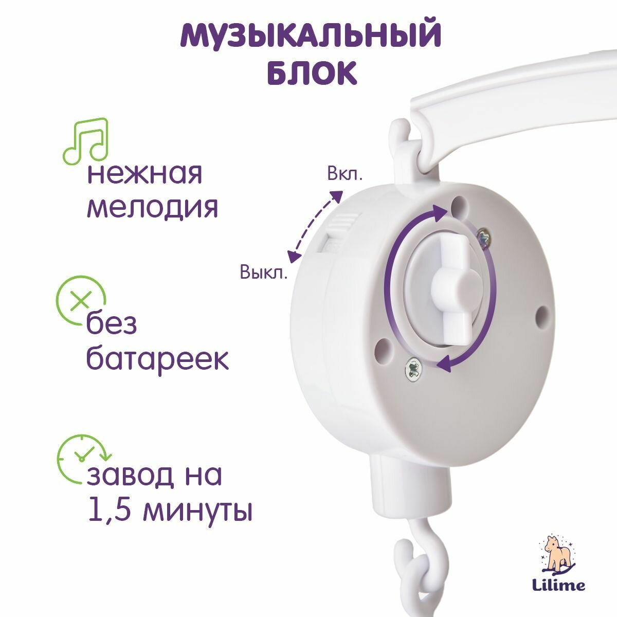 Купить Музыкальный мобиль в кроватку для новорожденных механический Lilime