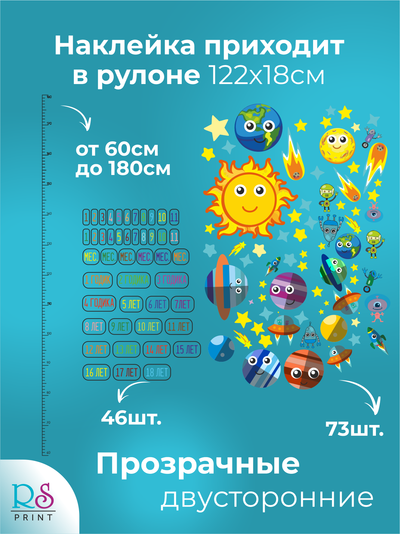 Ростомер детский прозрачный наклейка космос интересное: