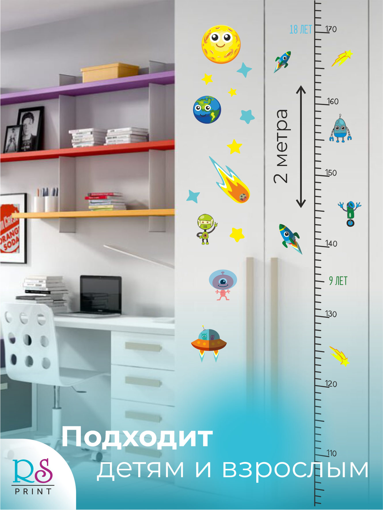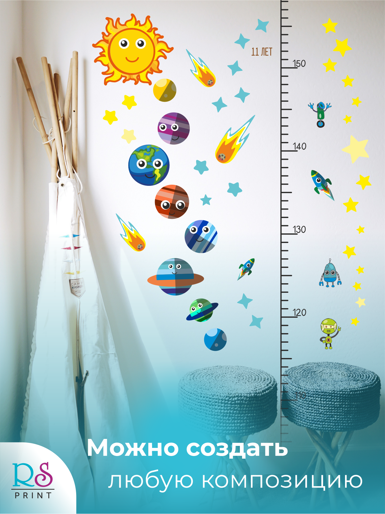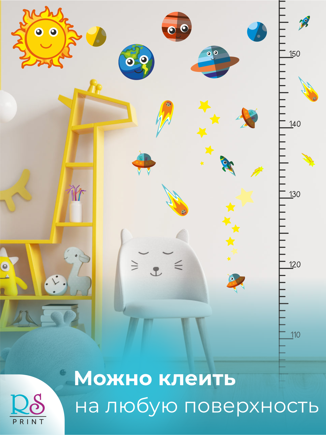 Купить Ростомер детский прозрачный наклейка космос