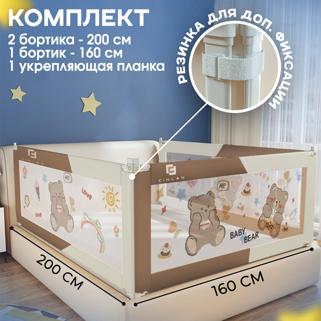 Защитный барьер для кровати 160х200 см с соединительной планкой CINLANKIDS интересное: