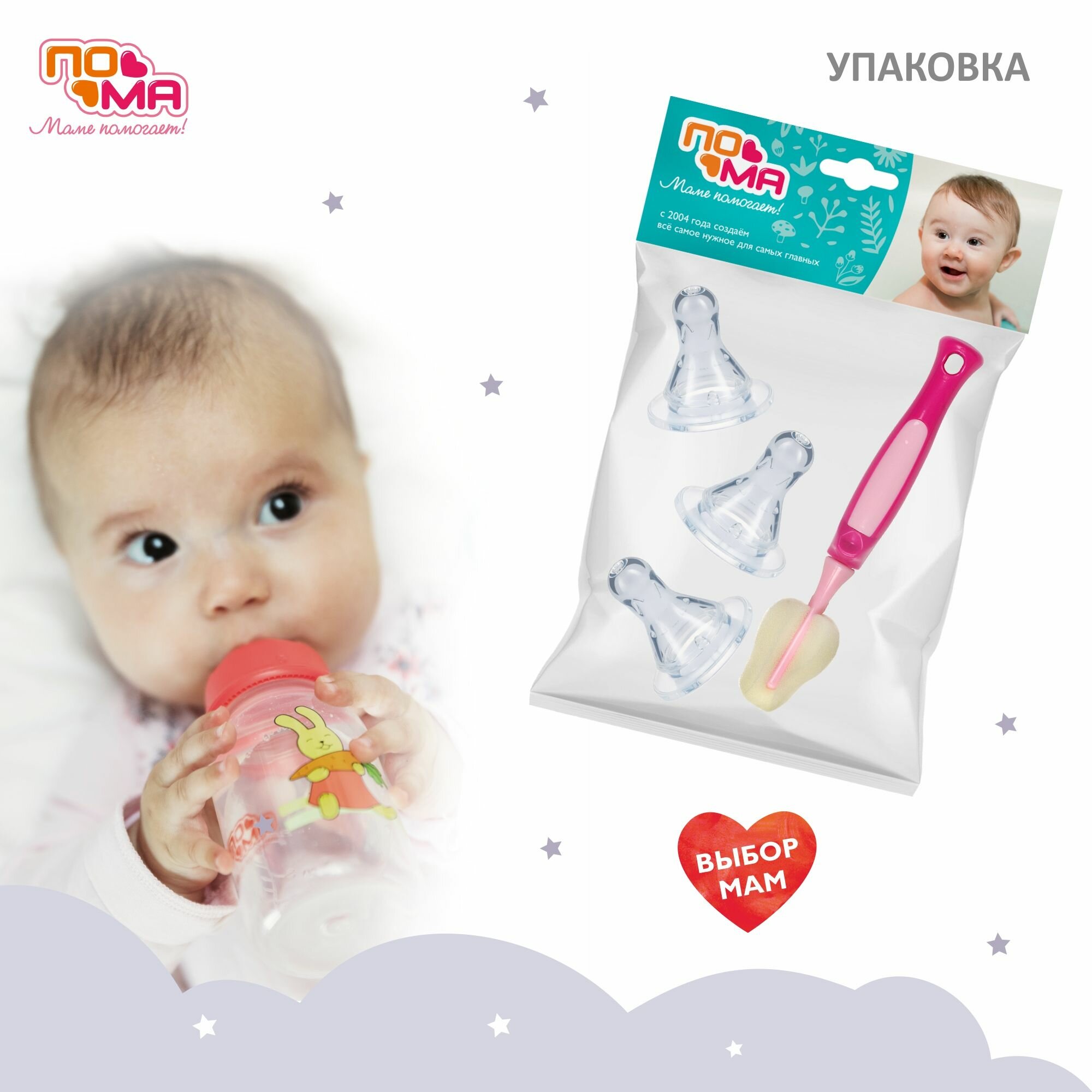Набор сосок ПОМА, силикон, антиколиковый, с 6 мес, ёршиком в подарок