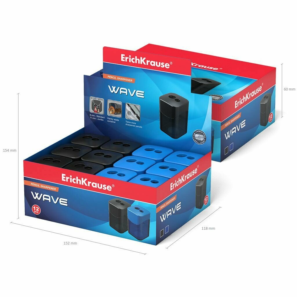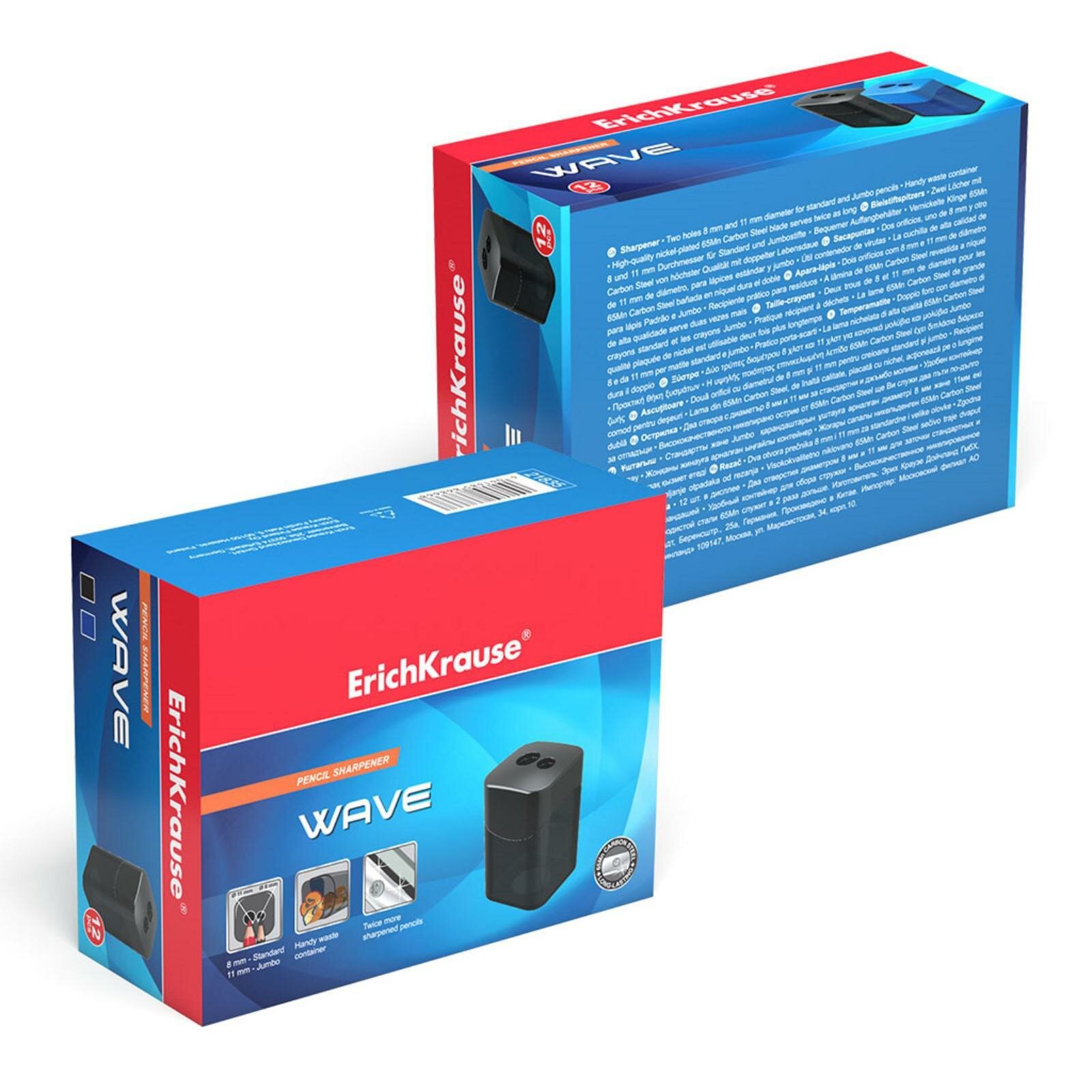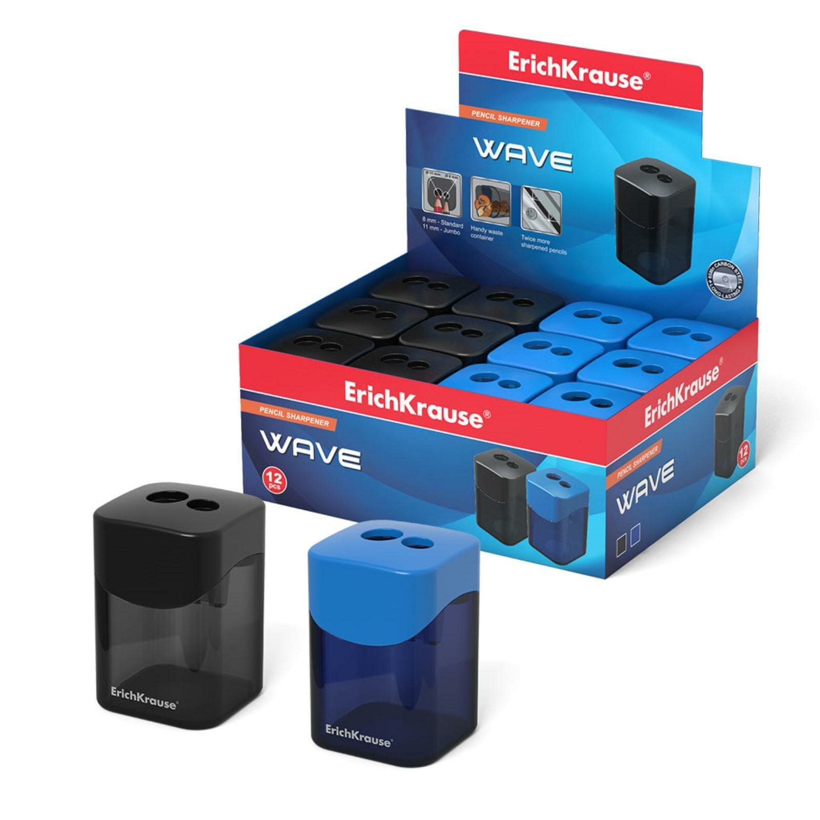 Точилка 2 отверстия ErichKrause Wave, с контейнером, отверстия диаметром 8 мм и 11 мм, микс./В упаковке шт: 1 интересное: