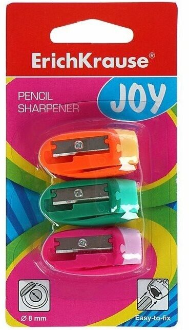 Точилка 1 отверстие ErichKrause Joy, 3 штуки, в блистере, ми
