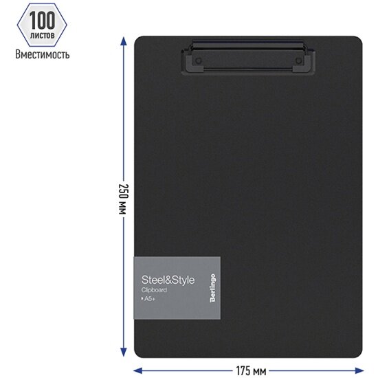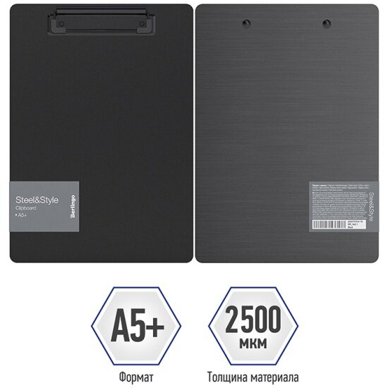 Купить Планшет с зажимом Berlingo "Steel&Style" А5+, 2500мкм, пластик (полифом), черный
