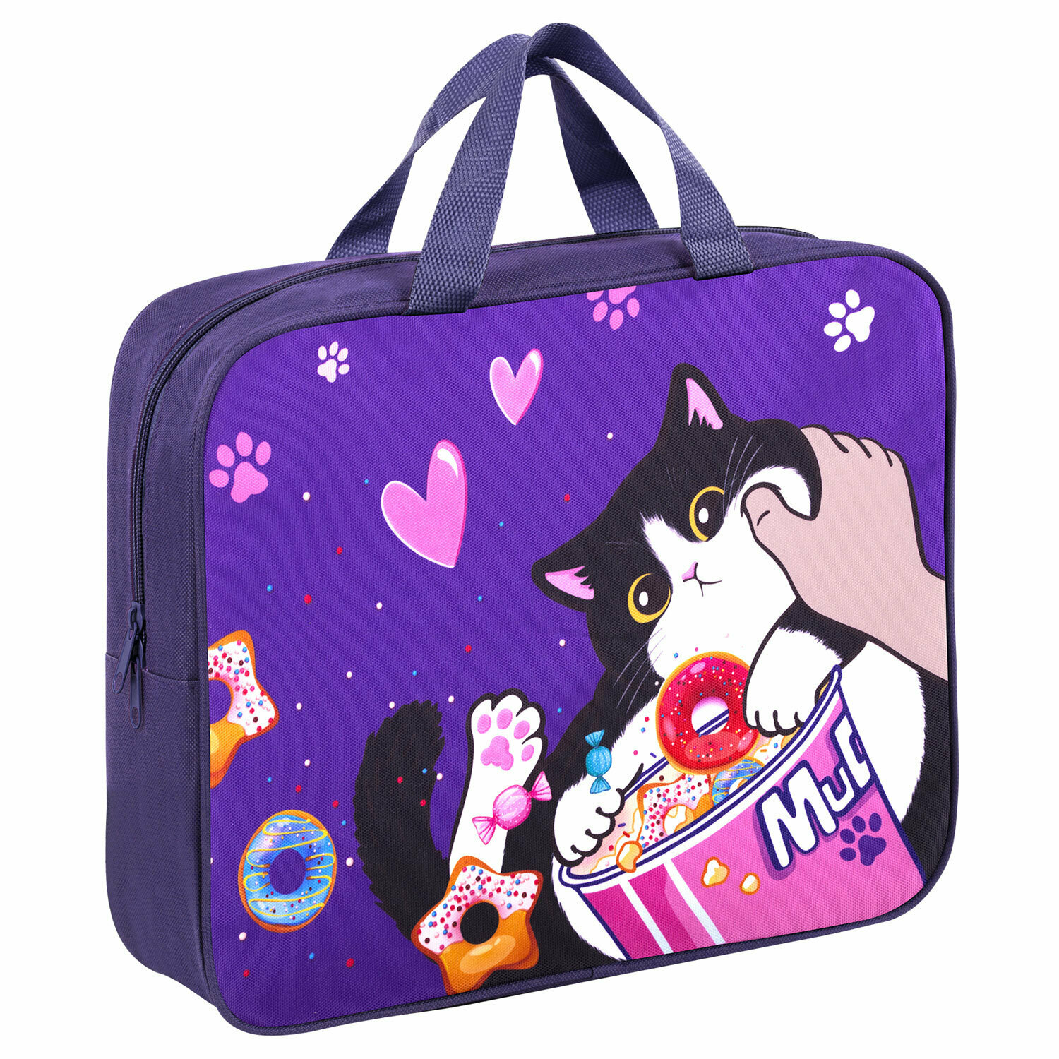 Папка на молнии с ручками Brauberg Kids А4, 1 отделение, полиэстер, 80мм, Sweet cheeks, 272120