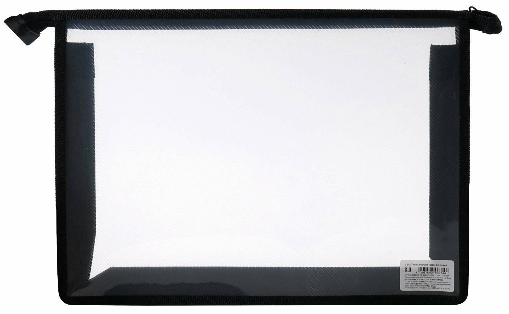 Папка для тетрадей прозрачная А4, молния сверху, черная (Пчёлка)