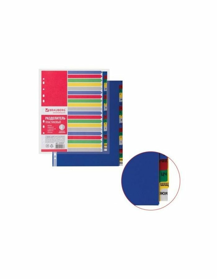 Купить Пластиковый разделитель Brauberg , А4+, 20 листов, алфавитный А-Я, оглавление, цветной