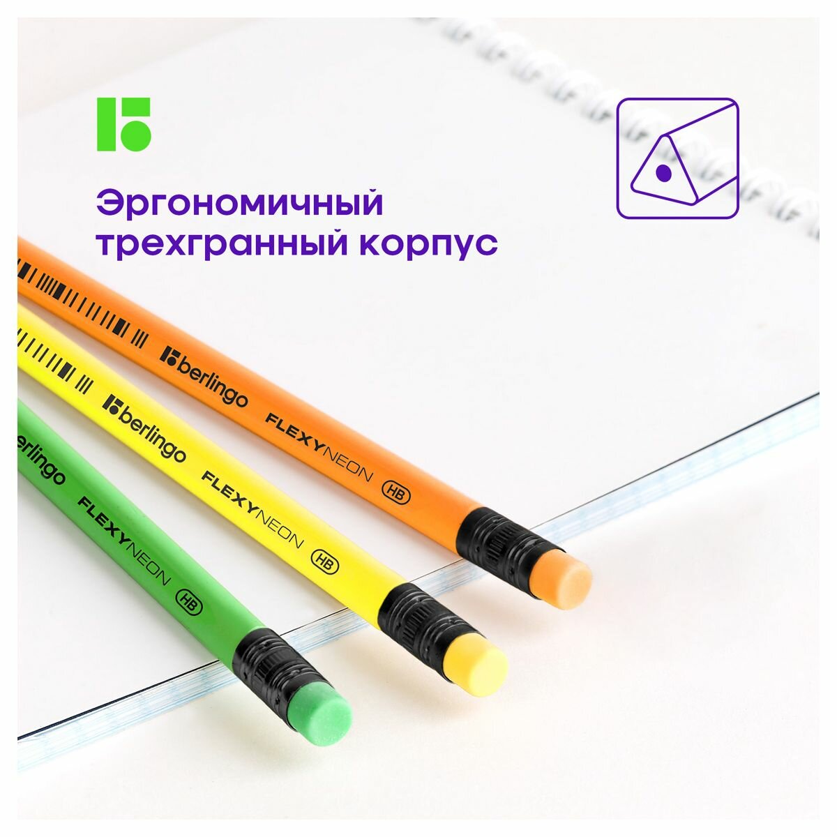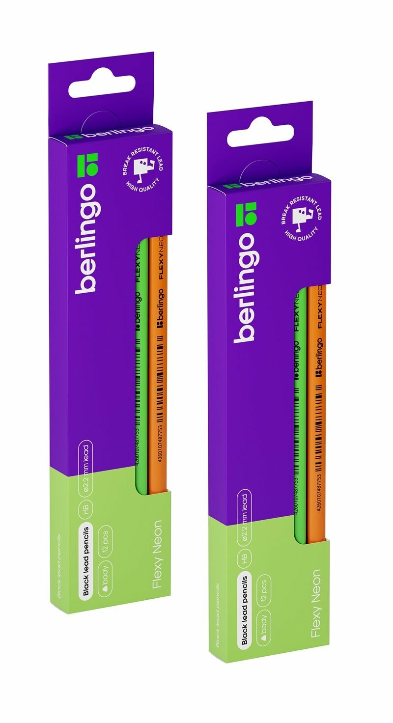 Карандаш чернографитный Berlingo "Flexy Neon" HB, с ластиком, заточенный, пластиковый, упаковка 12 шт.