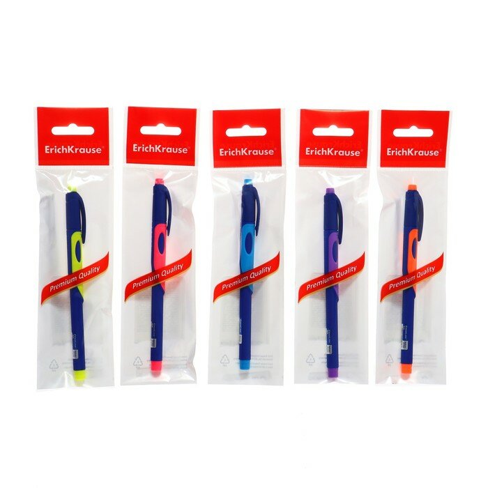 Ручка шариковая ErichKrause ErgoLine Kids, первоклассника, эргономичный держатель, корпус Soft-touch, узел 0.7 мм, чернила синие, микс, блистер