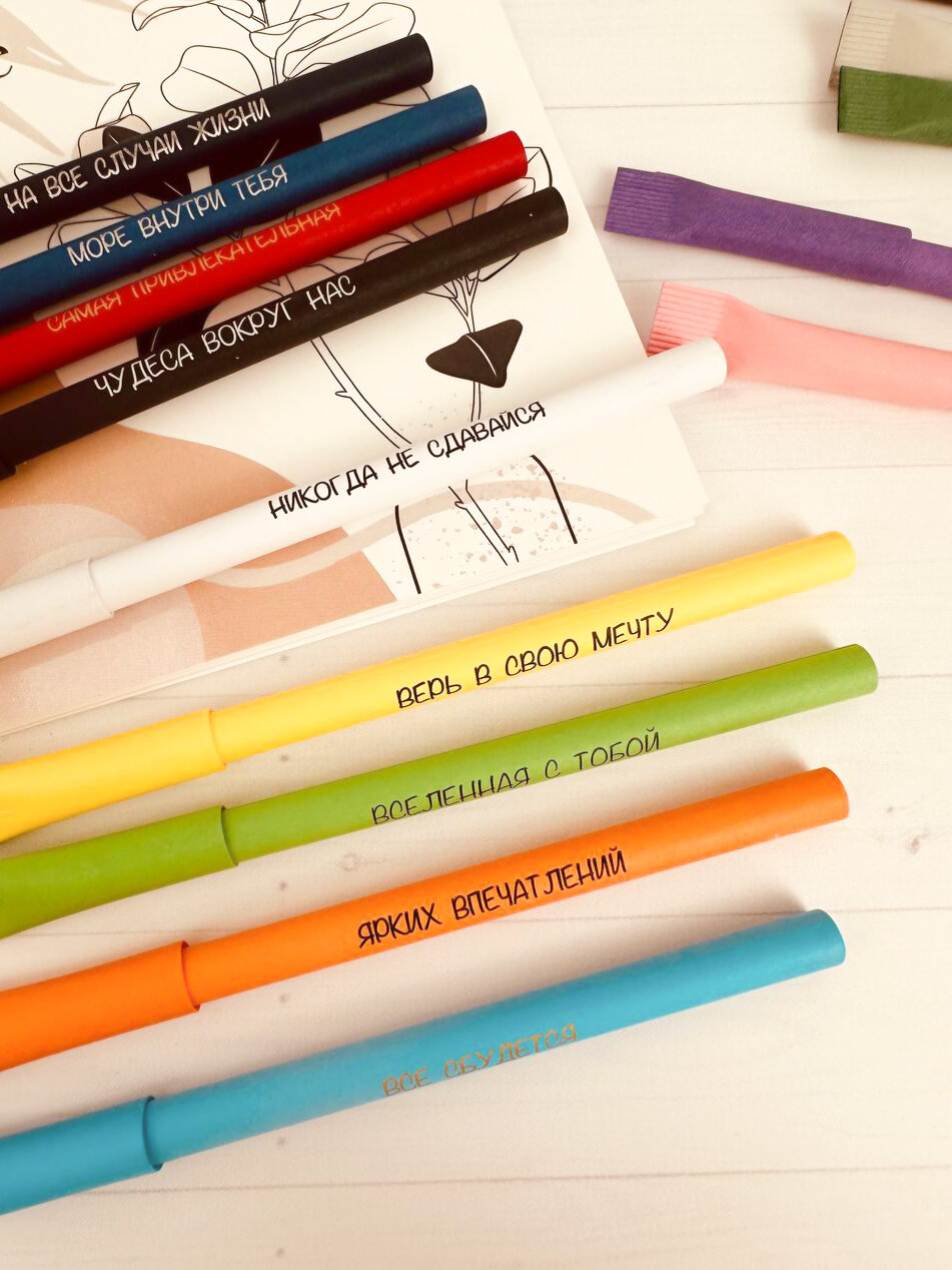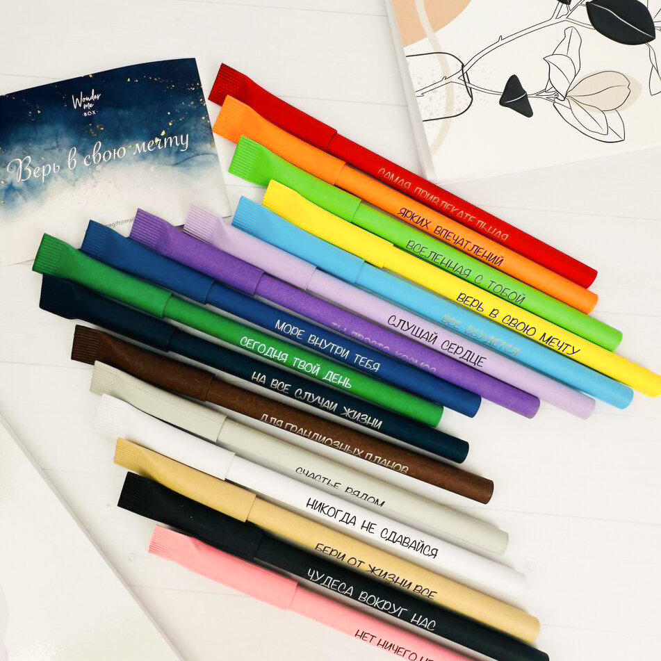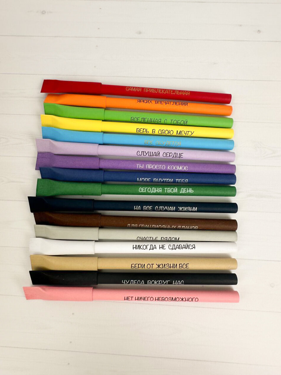 Купить Подарочный набор крафтовых ручек из картона с прикольной мотивирующей надписью / 15 штук / Крафт эко-ручки из бумаги