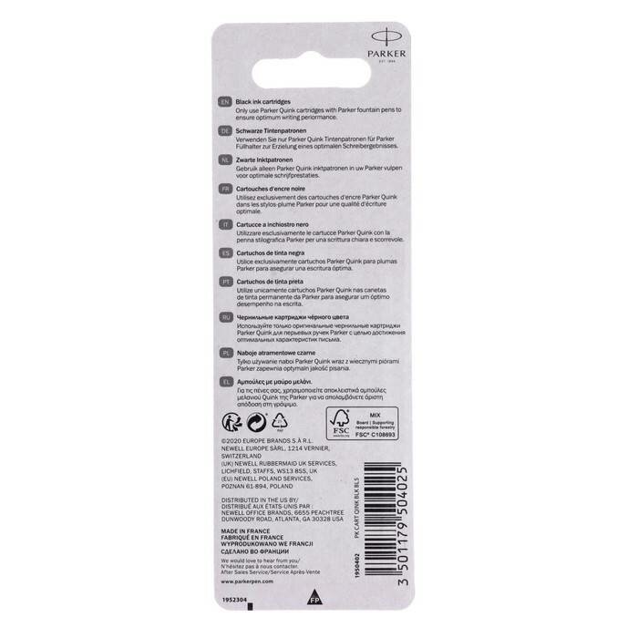 Купить Parker 1950402 Картриджи стандартные с черными чернилами для перьевых ручек parker, cartridge quink z11 parker, блистер