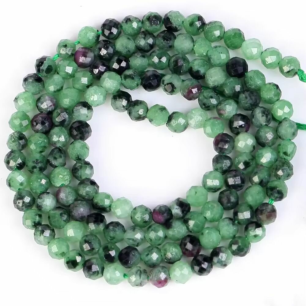 Купить Бусины из натурального камня Цоизит граненые 3 мм, на нитке 38 см, для рукоделия