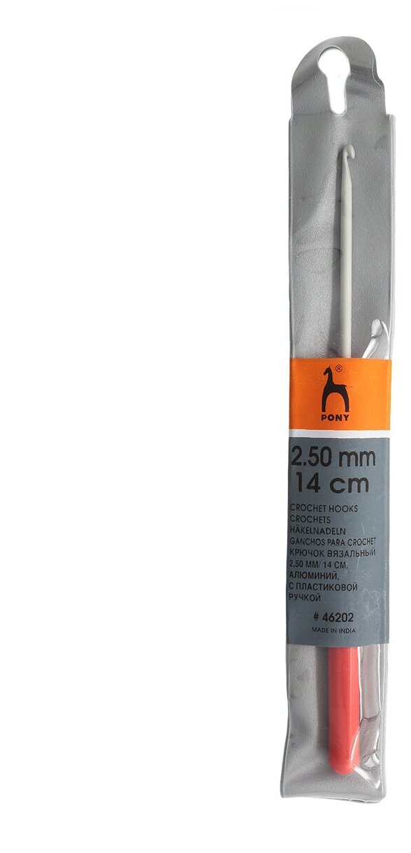Купить 46202 Крючок вязальный с пластиковой ручкой 2,50мм*14см, алюминий, PONY