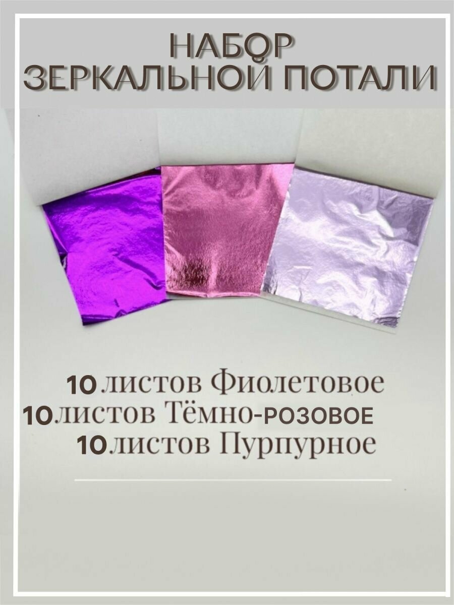 Зеркальная поталь / Набор 3 цвета по 10 листов / Темно-Розовая, Пурпурная, Фиолетовая интересное: