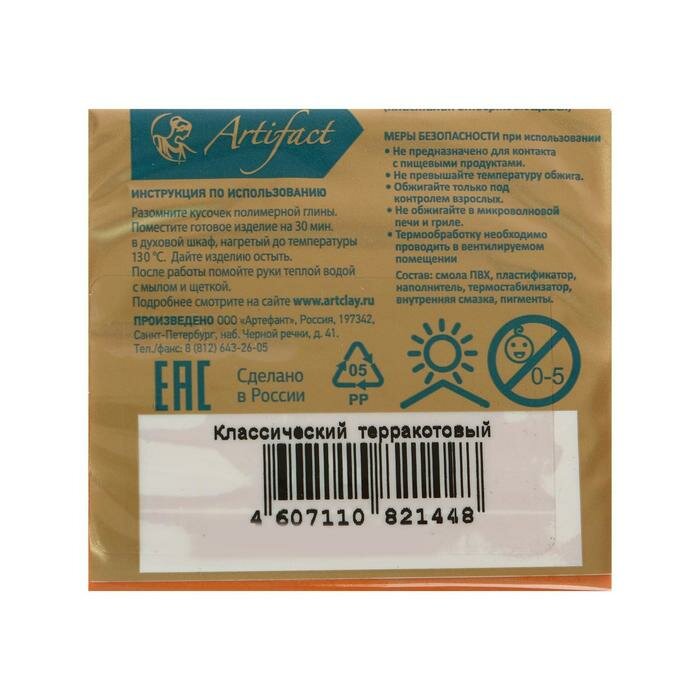 | Подробная комплектация | Полимерная глина запекаемая Артефакт Классическая, брус 50-56 г |