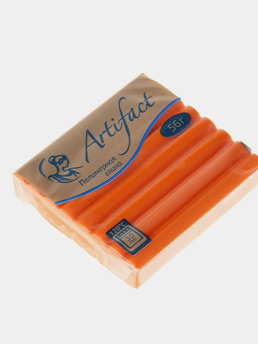 Полимерная глина для лепки, пластика запекаемая Артефакт, пластилин отверждаемый Artifact, брус 56 гр, 122 классический оранжевый