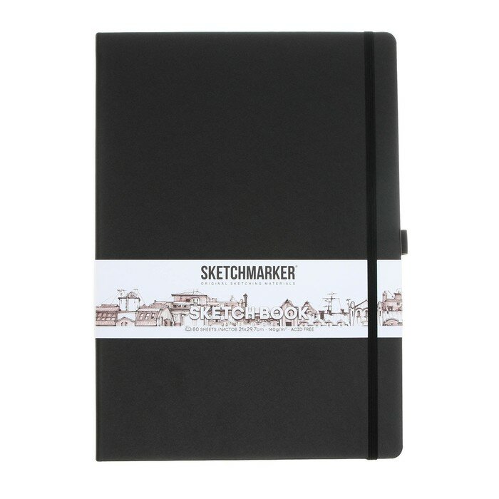 Купить Скетчбук для рисования и скетчинга SKETCHMARKER 140г/м2 21х29.7см. 160 страниц цвета слоновой кости, твердая обложка, цвет: черный