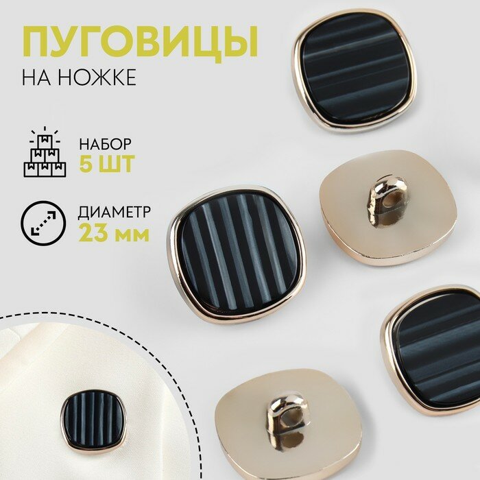 Набор пластиковых пуговиц на ножке, d - 23 мм, 5 шт, цвет черный