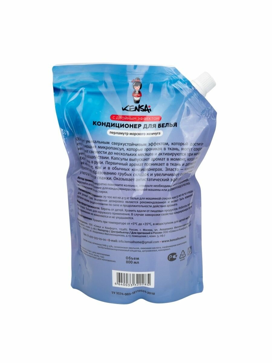 Кондиционер для белья Kensai с двойным эффектом "Перламутр морского жемчуга", сменный блок 800 мл
