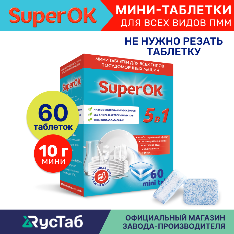 Мини таблетки для посудомоечной машины для компактных пмм "SuperOK", 60 шт. интересное: