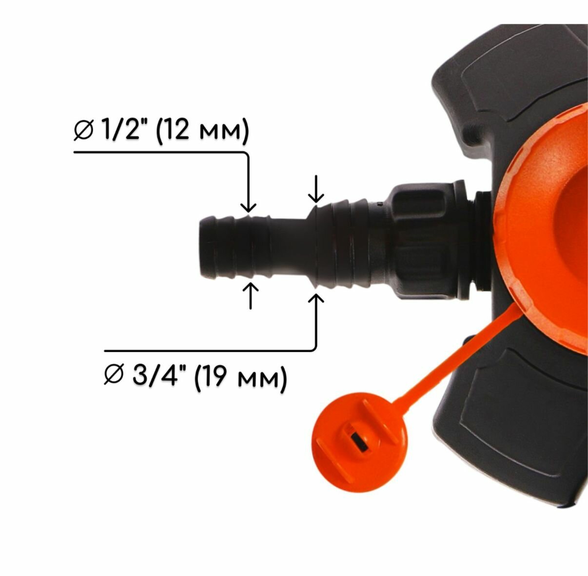 Дождеватель для полива круговой, 28 м2: предназначен для автоматического орошения; в процессе работы вода проходит через специальные сопла