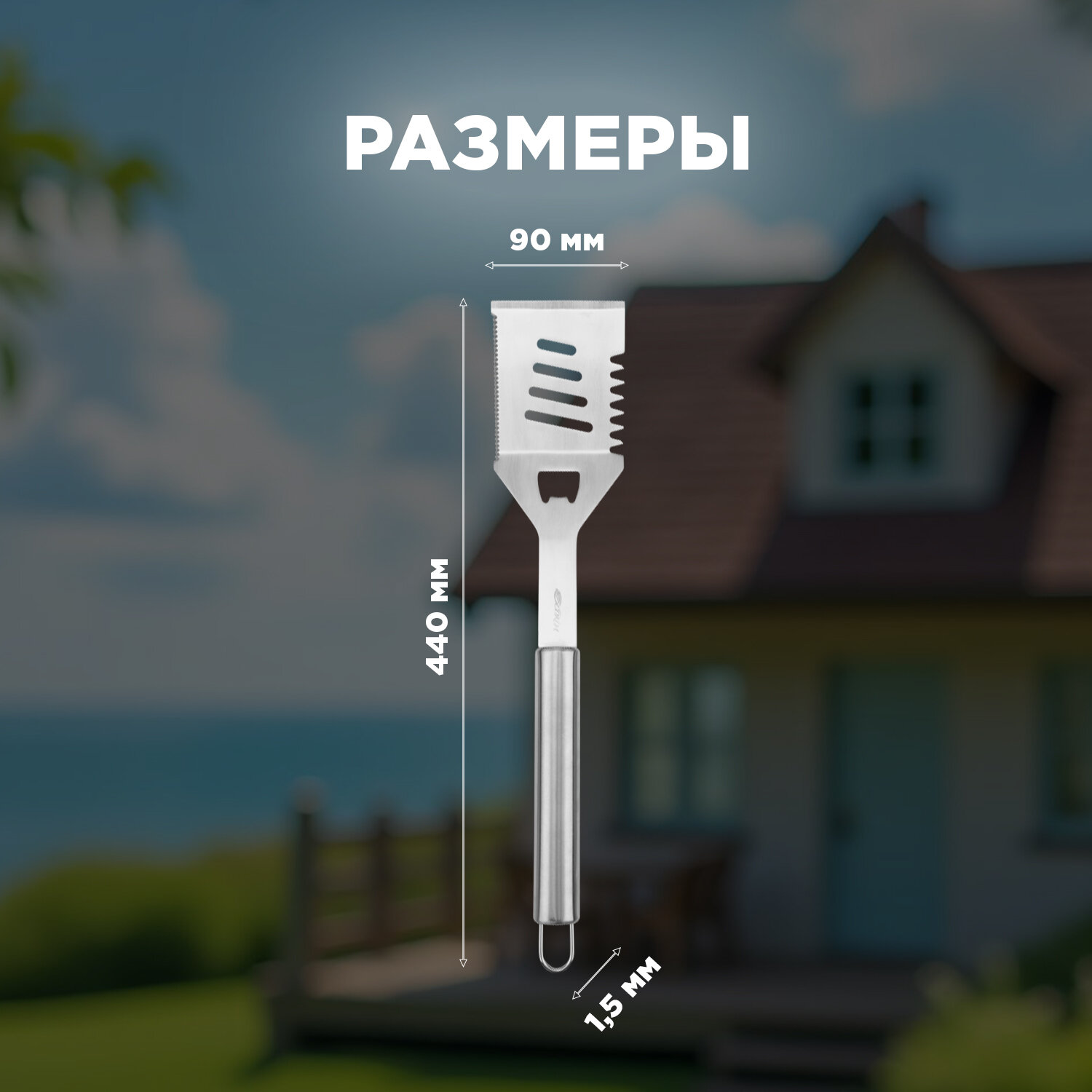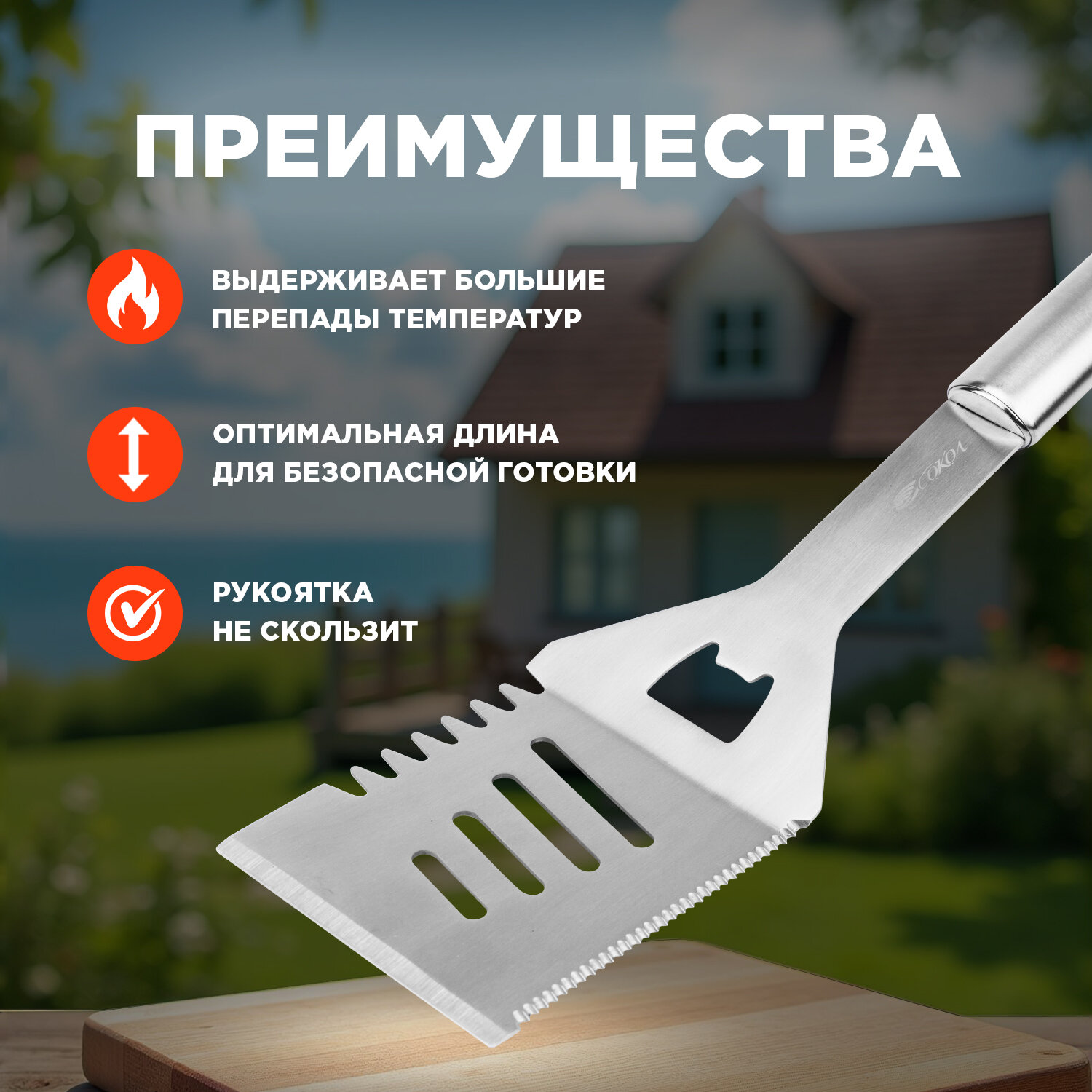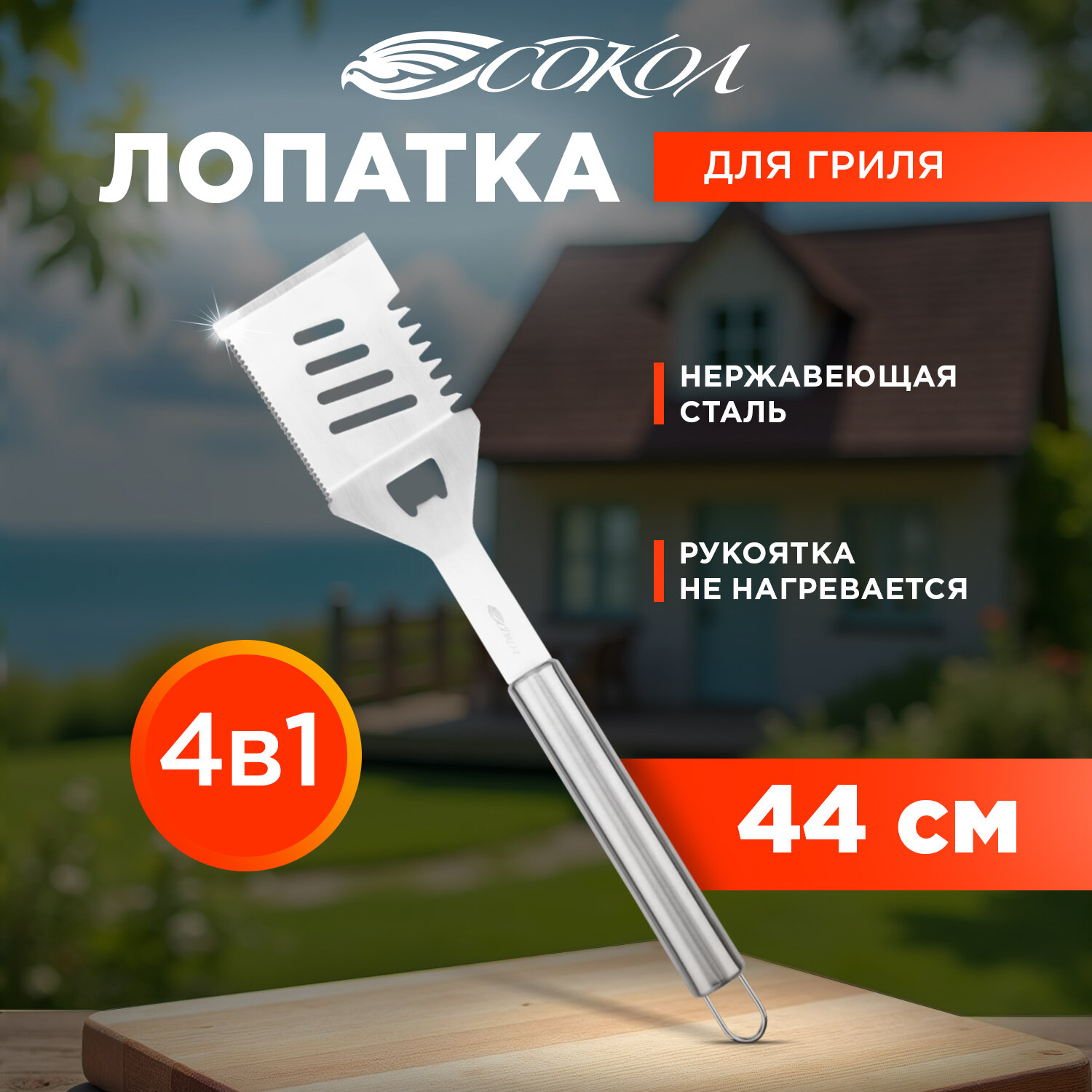Купить Лопатка для гриля/барбекю сокол из нержавеющей стали с металлической рукояткой и зубцами, 44 см