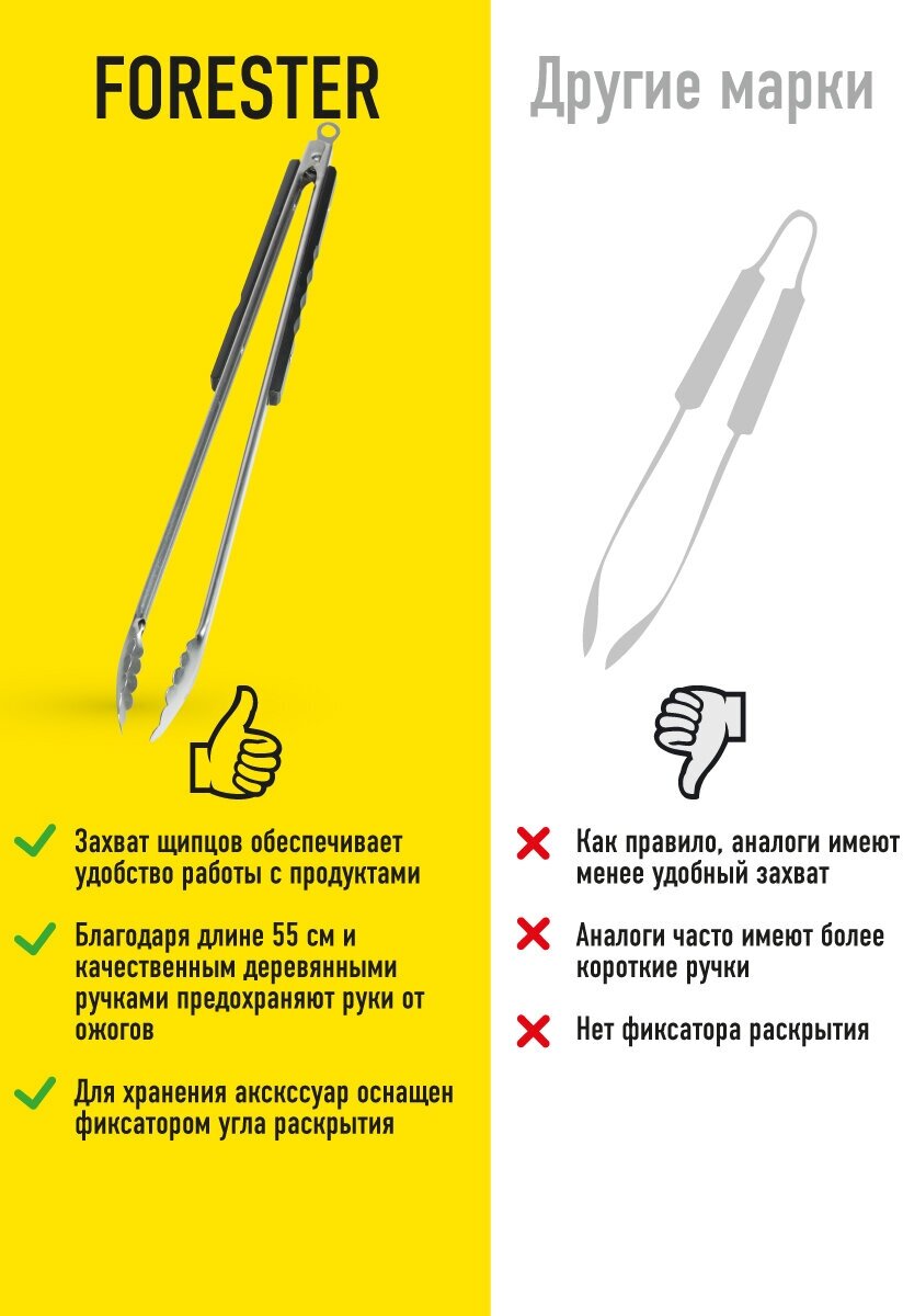 Щипцы стальные для гриля универсальные Forester BC-775 59,5х5х5,5 см интересное: