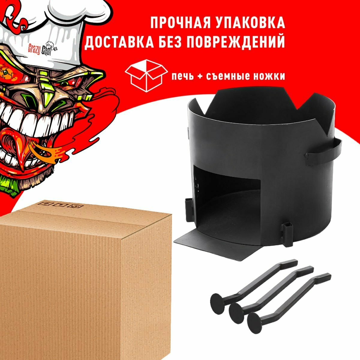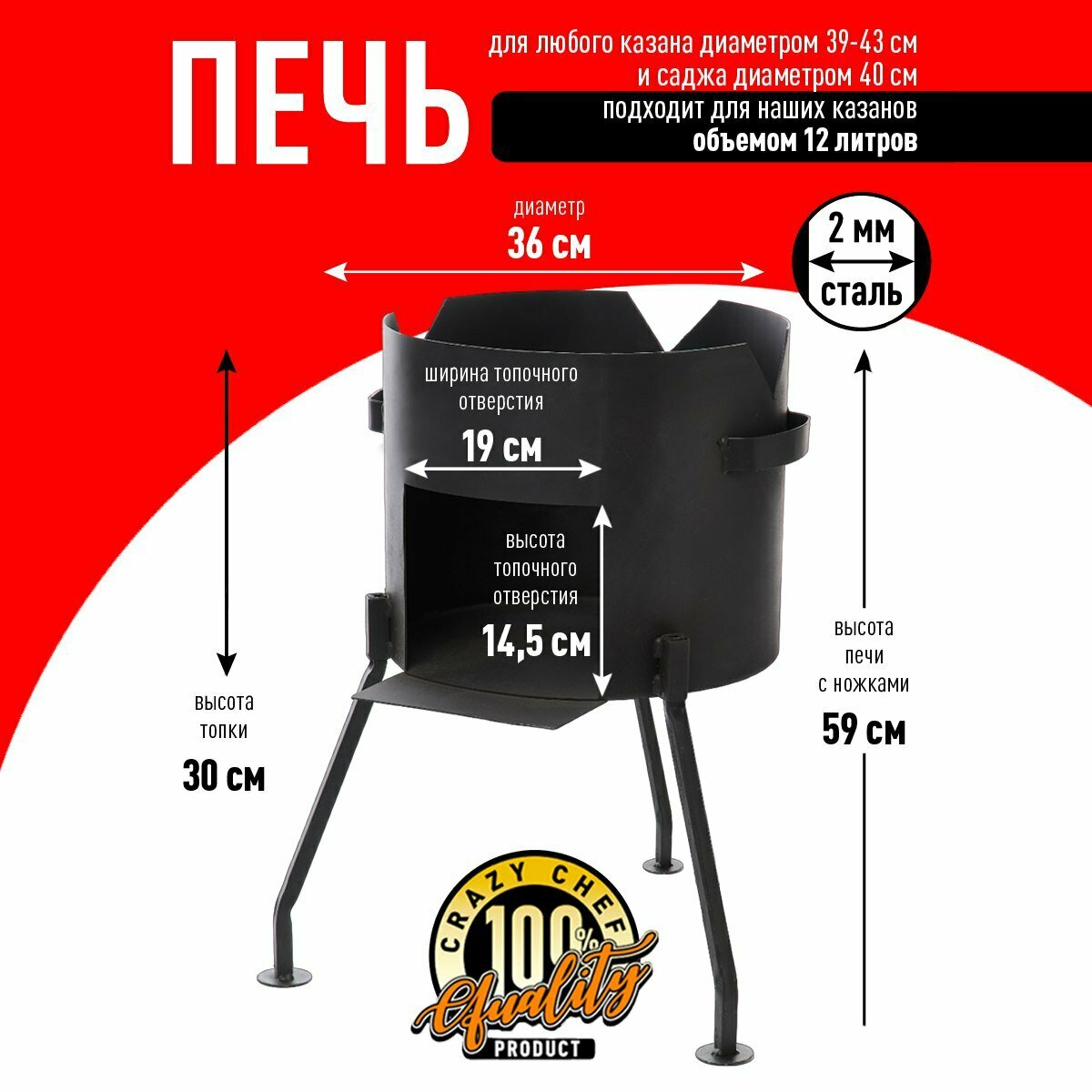 Печь для казана объемом 10 литров с ручками, съемные ножки, зольник