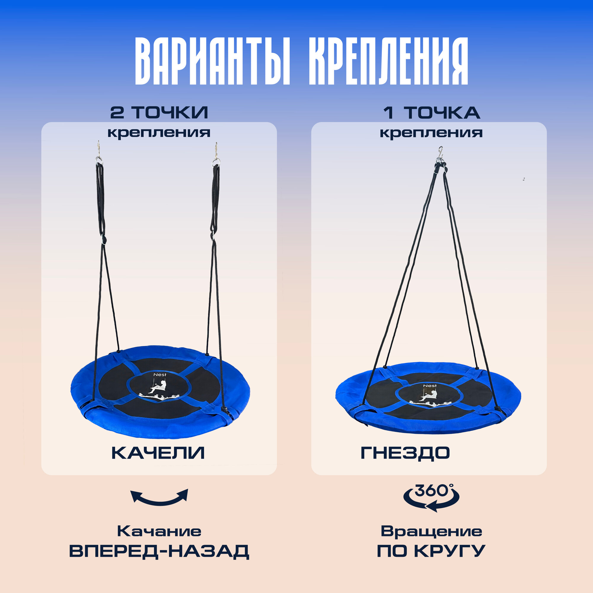 Кресло гамак подвесное Nest, качели гнездо садовые подвесные, качалка диаметр 100 см, синий, черный, АМИ мебель интересное: