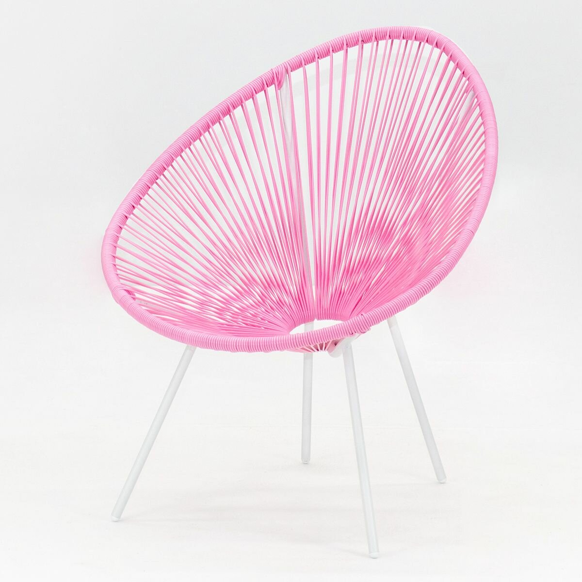 Кресло KORNERA "Акапулько", каркас белый, искусственный ротанг розовый
