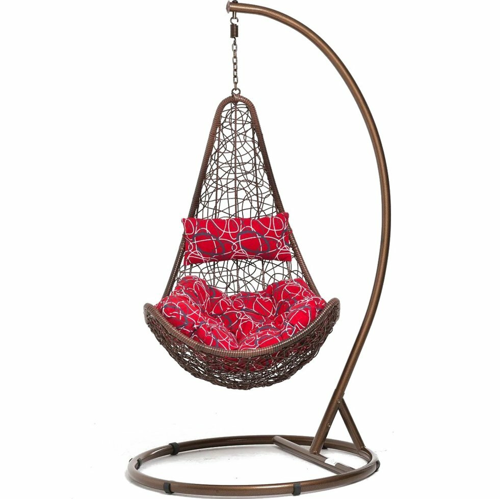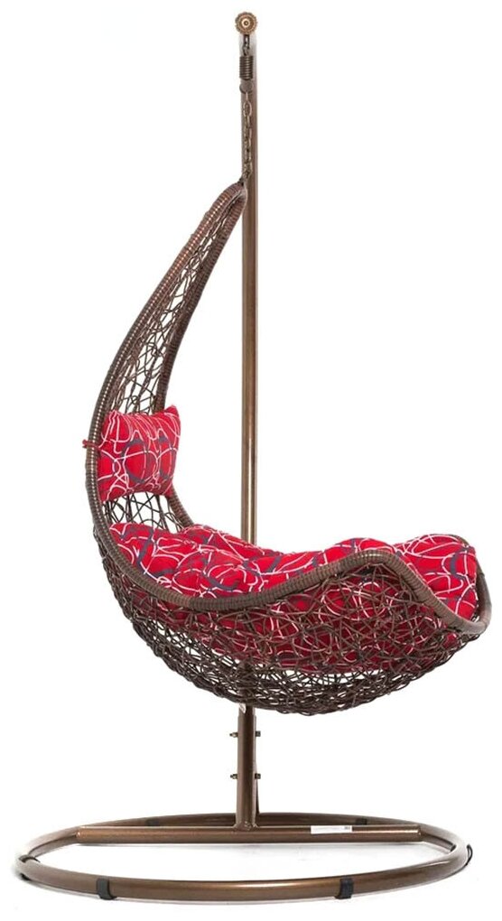 Кресло ... Кресло подвесное капля с ротангом белое красная подушка
