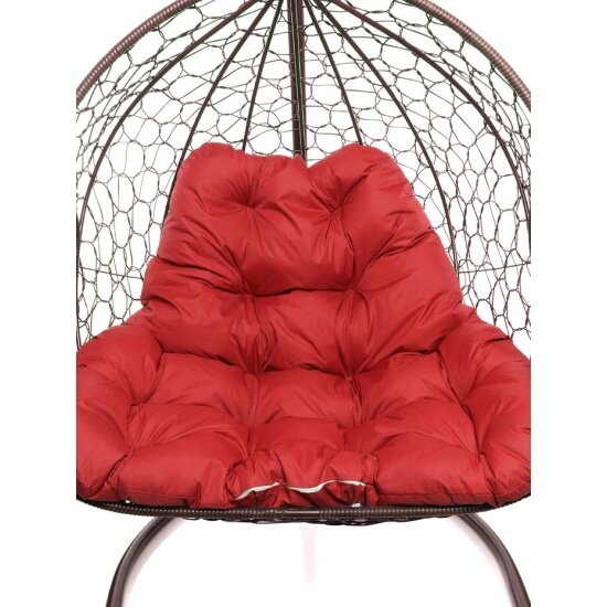 Подвесное кресло кокон двухместное M-group для двоих с ротангом коричневое+красная подушка интересное: