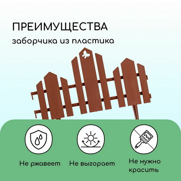 Ограждение декоративное, 25 ? 170 см, 5 секций, пластик, терракотовое, Чудный сад Кострома Пластик .