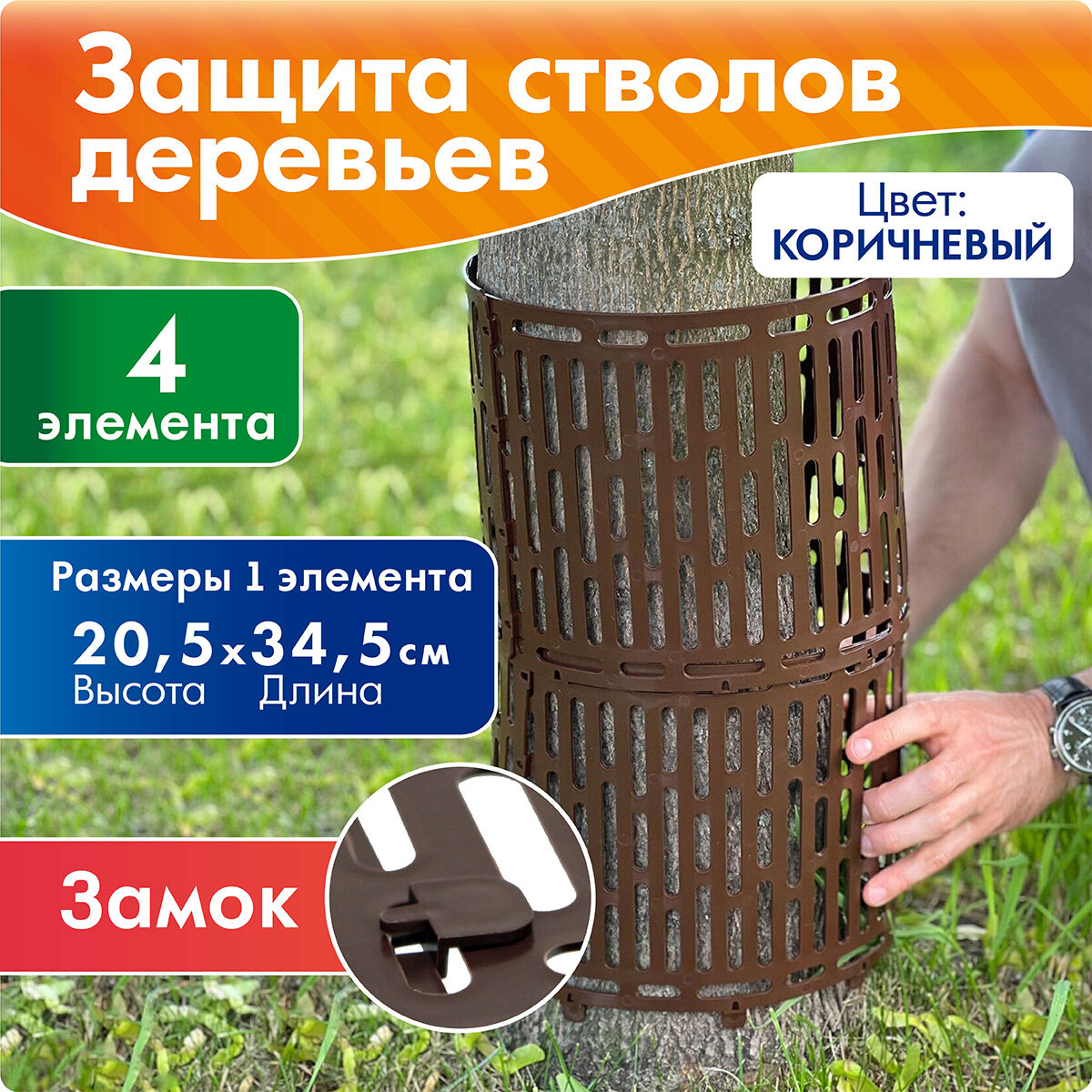 Защита стволов деревьев, цветов, защита от триммера 4 шт. коричневый, Протэкт интересное: