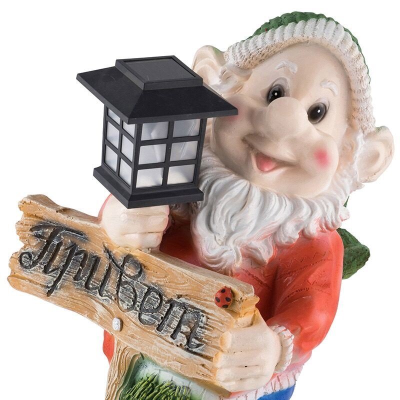 Фигурка садовая "Гном с фонарем и табличкой Привет" H-52см