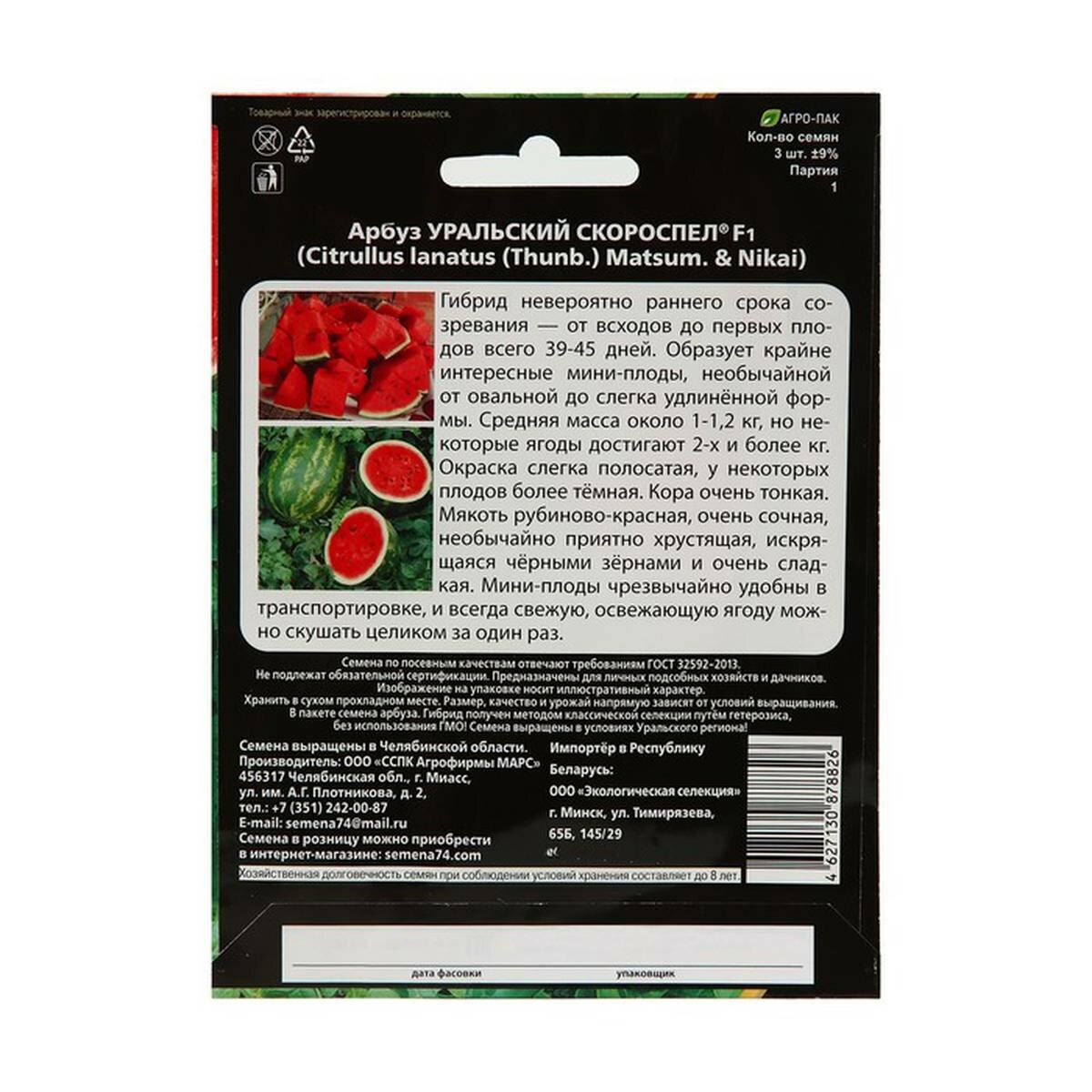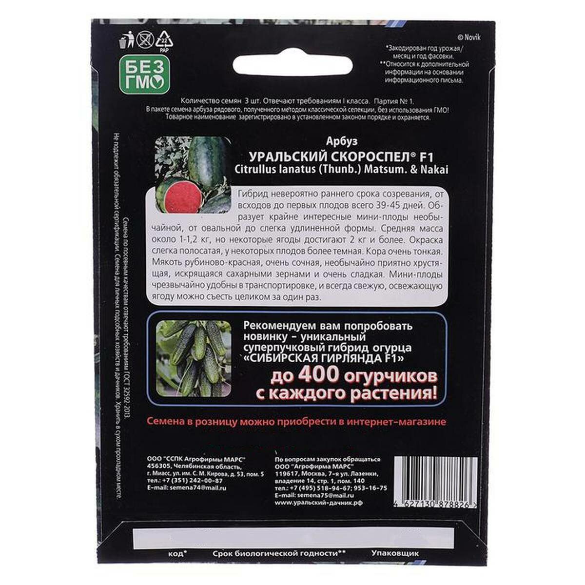СохранитьСемена Арбуз "Уральский Скороспел", F1, 3 шт, 1 упак. интересное: