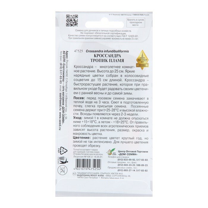 Кроссандра Тропик, пламя, комнатное быстрорастущее, обильно и длительноцветущее растение, 3 семян интересное: