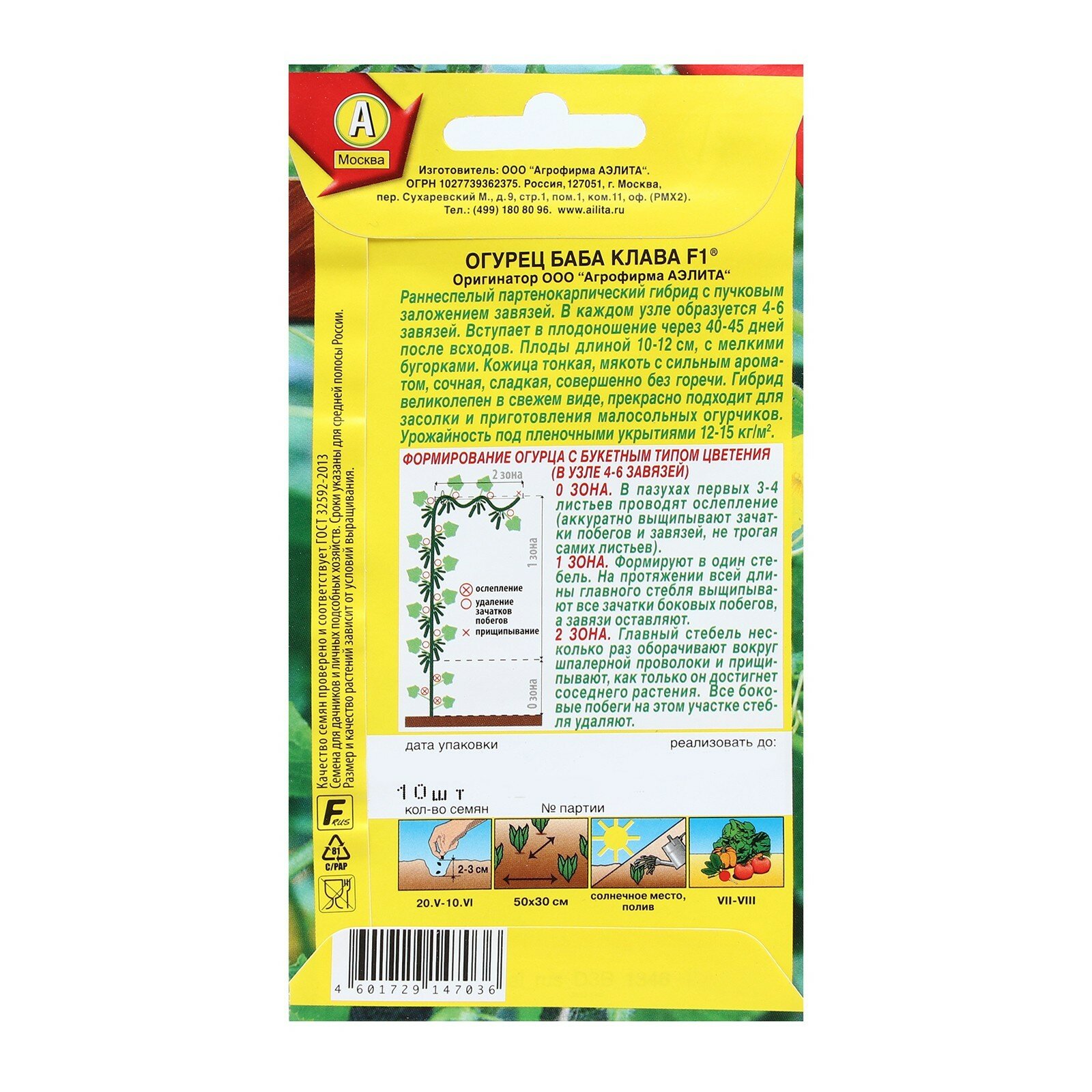 Семена Огурец Баба Клава F1 Парт., раннеспелый, (Аэлита) 10шт интересное: