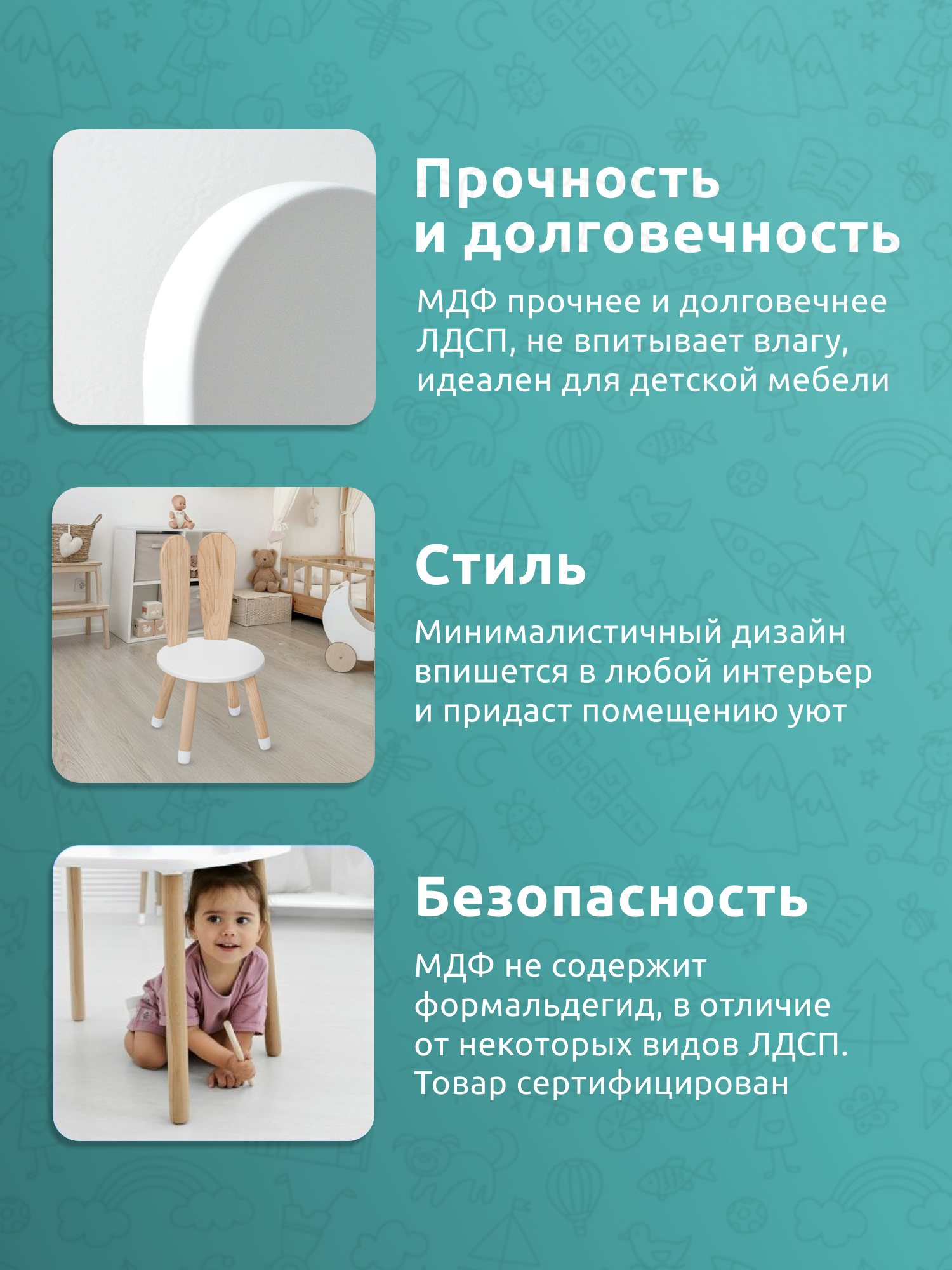 Ниже Вы можете прочитать отзывы на Детский стул деревянный для детей со спинкой Кролик Мега Тойс белый в комнату для малышей / стульчик Монтессори для ребенка от 1 года до 6 лет из МДФ, ознакомится с подробными характеристиками, посмотреть интересные обзоры и фотографии на Детский стул деревянный для детей со спинкой Кролик Мега Тойс белый в комнату для малышей / стульчик Монтессори для ребенка от 1 года до 6 лет из МДФ.