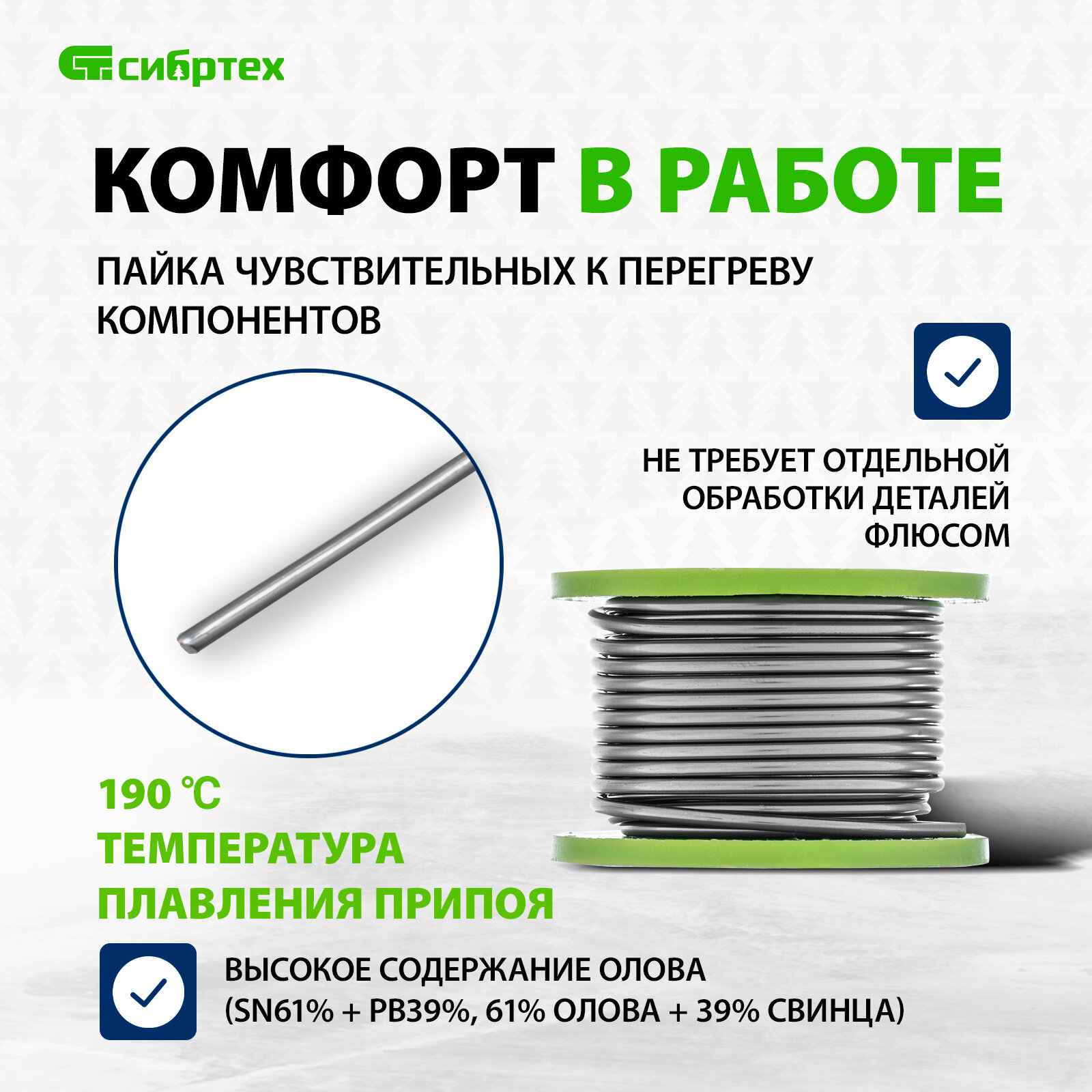 | Комплектация | Припой с канифолью Сибртех 913375 |