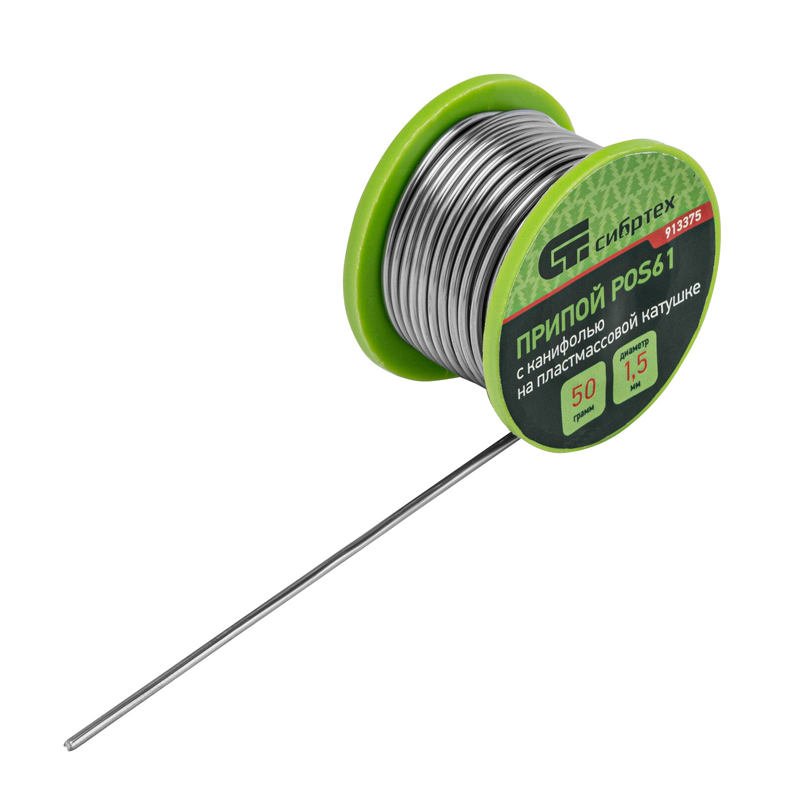 Припой с канифолью, D 1,5 мм, 50 г, POS61, на пластмассовой катушке// Сибртех 913375 .