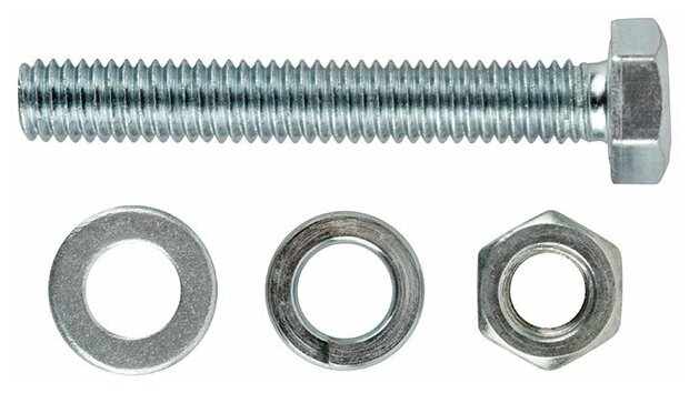 Купить Комплект: Болт DIN933 6х20, с гайкой М6 DIN934, шайбой М 6 DIN125, шайбой пруж. М6 DIN127 (фасовка 11шт.) 24800-3