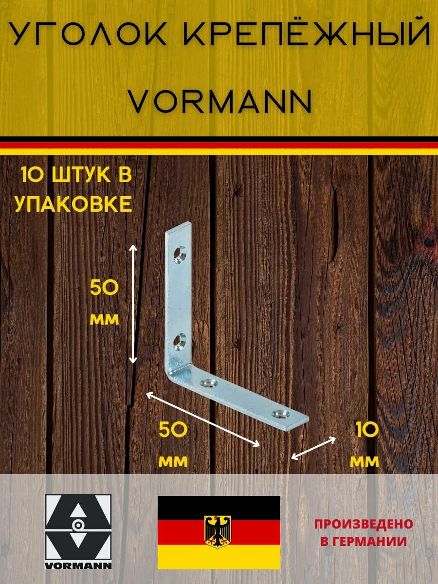 Крепежный уголок VORMANN 50х50х10х2 мм, оцинкованный, в комплекте 10 шт.