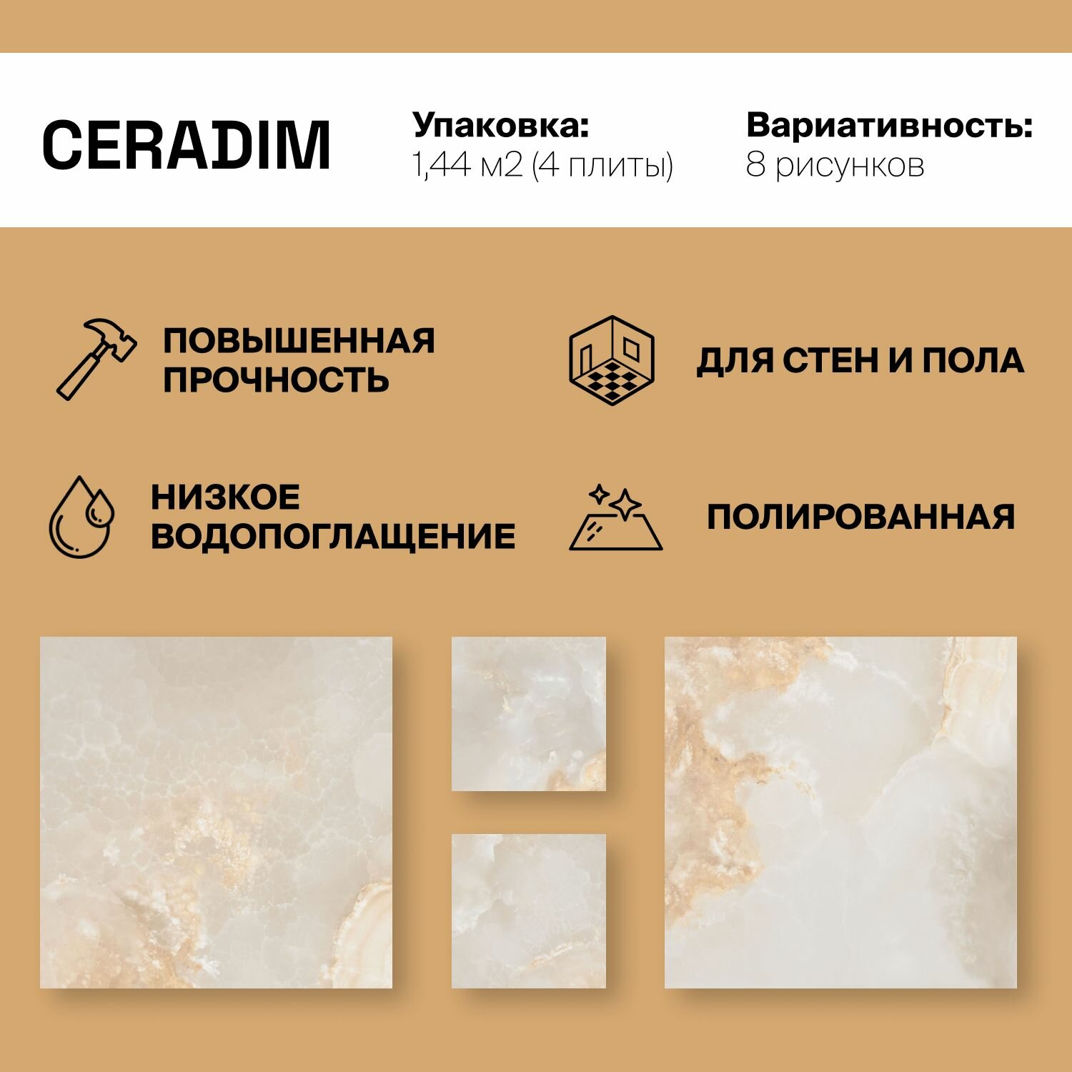 Керамогранит Ceradim Onyx Orlam бежевый 60х60 Полированный, уп. 1.44 м2. (4 плитки) интересное: