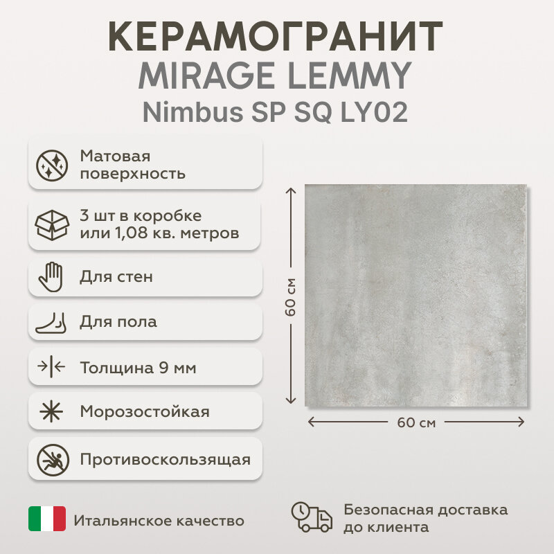 СохранитьКерамогранит Mirage LEMMY Nimbus SP SQ LY02 60x60 см, 1.08 кв.м (3 шт в упак) интересное: