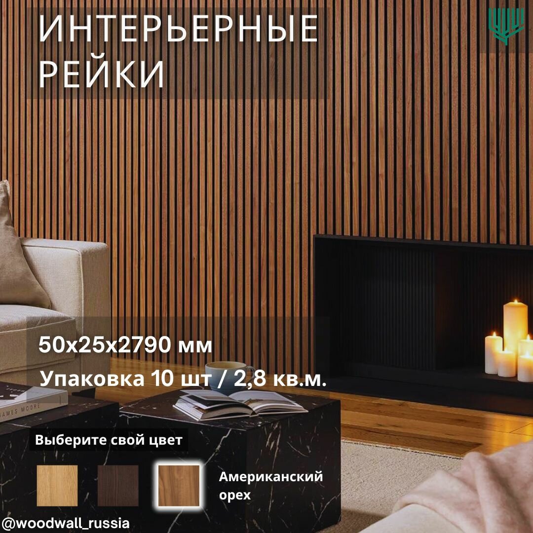 WOODWALL Рейка интерьерная МДФ декоративная, как деревянная; для стен, зонирования комнаты, потолка, для перегородки или ниши 40*30*2790, набор из 8 штук.