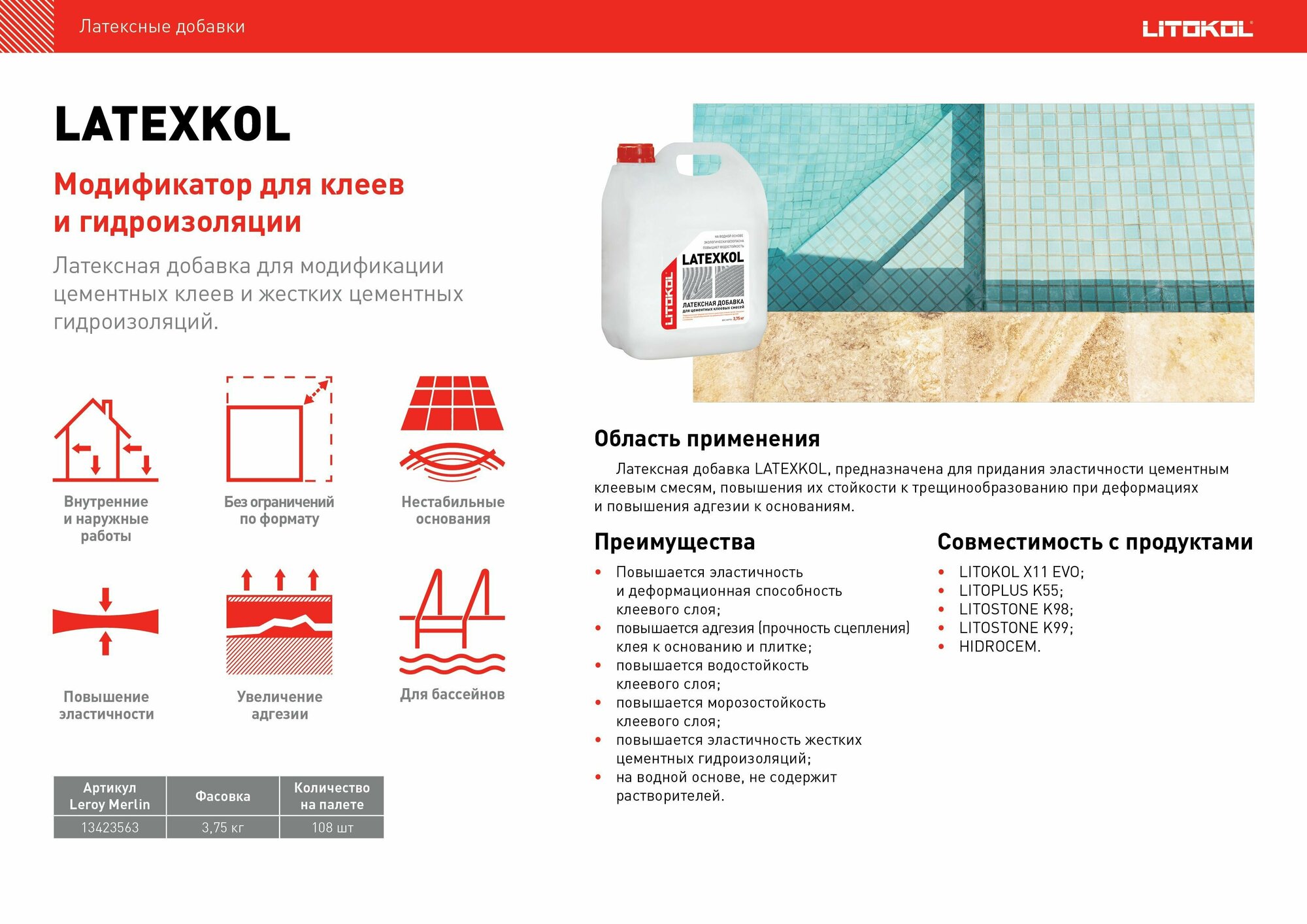 Латексная добавка LITOKOL LATEXKOL, 8,5 кг интересное: