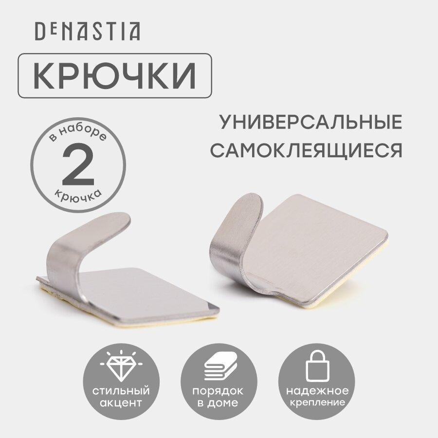 Набор крючков на липучке DeNASTIA 2шт; 2,5х4см, нержавеющая сталь, цвет серый, A000087 интересное: