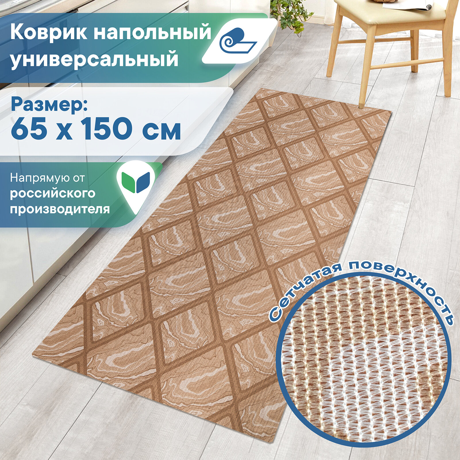 Купить Коврик напольный VILINA противоскользящий мягкий безворсовый для ванной для туалета в комнату 65х150 см "Элемент" коричневый